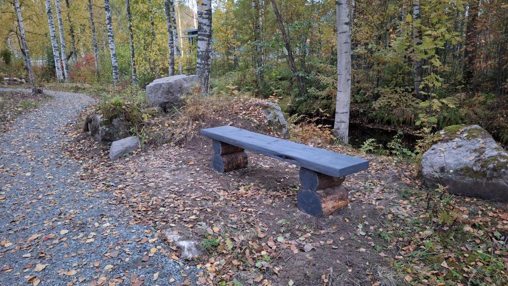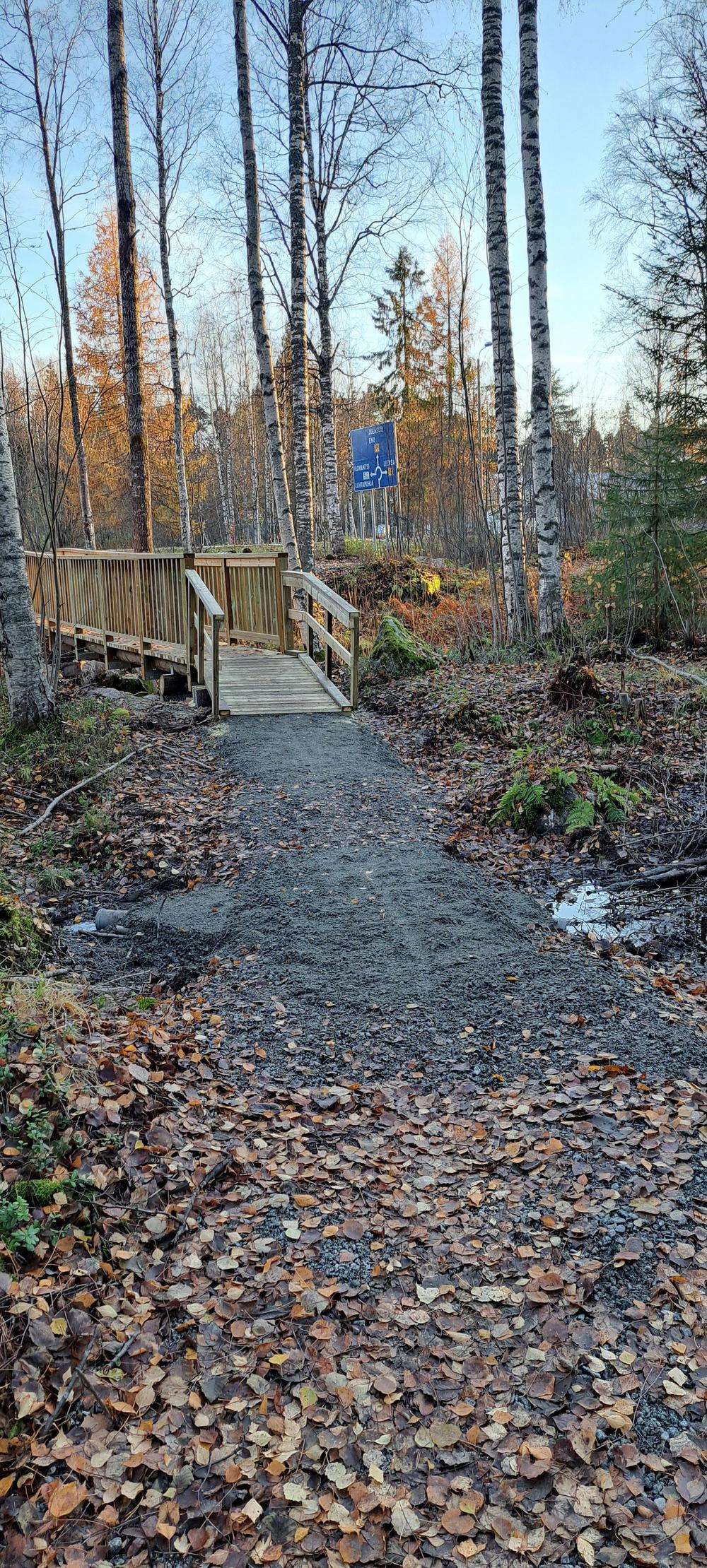 Aseman puoleinen silta saatiin lahjoituksena kaupungilta. Se oli aiemmin sijoitettuna Siniseen puistoon. Kaupunki oli jo päättänyt purkaa sen, mutta kysyttäessä lahjoittivat sillan mielellään virkistysreitin käyttöön.
